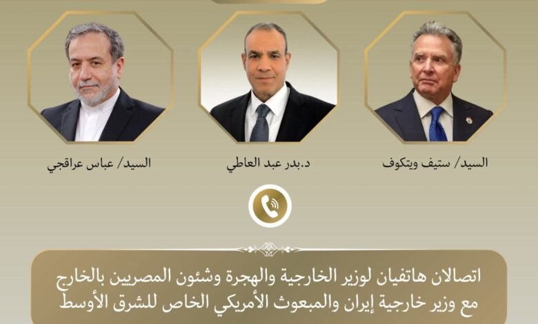 أجرى د. بدر عبد العاطي وزير الخارجية والهجرة وشئون المصريين بالخارج اتصالين هاتفيين بكلٍ من السيد “عباس عراقجي” وزير خارجية إيران، والسيد “ستيف ويتكوف” المبعوث الأمريكي الخاص للشرق الأوسط موخراً، حيث تناولت الاتصالات المستجدات بالمنطقة في ظل تصاعد حدة التوتر بالإقليم.