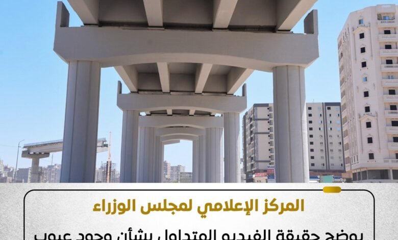 المركز الإعلامي لمجلس الوزراء يوضح حقيقة الفيديو المتداول بشأن وجود عيوب هندسية بكوبري “45 الدولي” بالإسكندرية