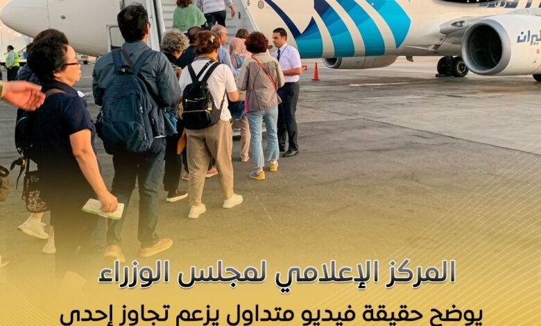 المركز الإعلامي لمجلس الوزراء يوضح حقيقة فيديو متداول يزعم تجاوز إحدى الرحلات الجوية للطاقة الاستيعابية المقررة لعدد الركاب على متن الطائرة