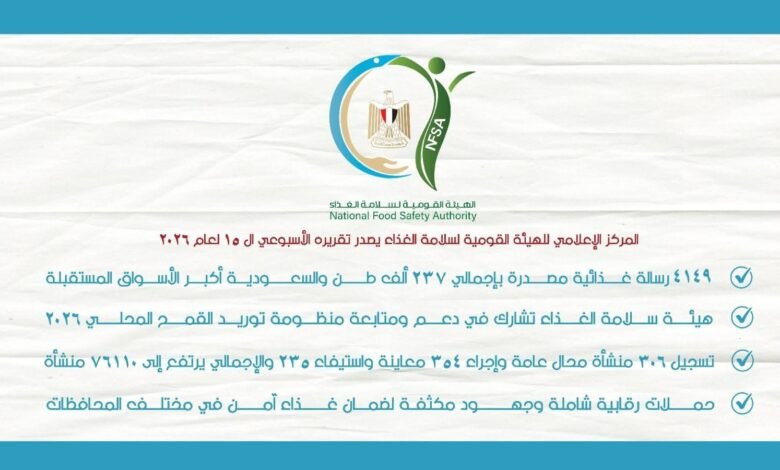 أصدر المركز الإعلامي للهيئة القومية لسلامة الغذاء تقريره الأسبوعي الـ 15 لعام 2026، وذلك عن الفترة من 18 – 24 إبريل 2026، والذي تضمن العديد من الأنشطة المختلفة على النحو التالي: