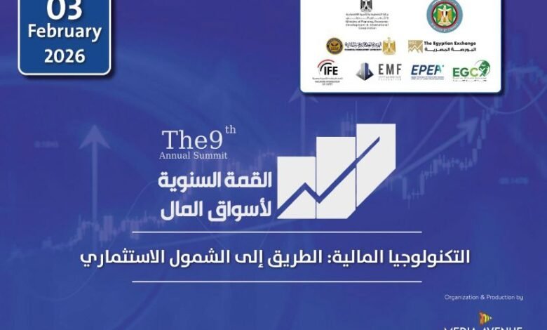 تنطلق القمة السنوية التاسعة لأسواق المال، التي تنظمها شركة «ميديا أفنيو»، يوم الثلاثاء 3 فبراير 2026، تحت عنوان «التكنولوجيا المالية: الطريق إلى الشمول الاستثماري»، برعاية وزارة المالية ووزارة التخطيط والتعاون الدولى والبورصة المصرية، وبحضور أحمد كجوك وزير المالية، ومحمد فريد رئيس الهيئة العامة للرقابة المالية، وإسلام عزام رئيس البورصة المصرية، ومحمد صبري نائب رئيس البورصة، في وقت يشهد فيه القطاع المالي تحولات هيكلية متسارعة مدفوعة بالتقدم التكنولوجي وتغير أنماط الاستثمار.