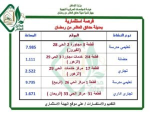 ودعا جهاز المدينة المستثمرين إلى زيارة بوابة خدمات المستثمرين للاطلاع على التفاصيل الكاملة وشروط الطرح والتقديم عبر الرابط التالي اول تعليق.