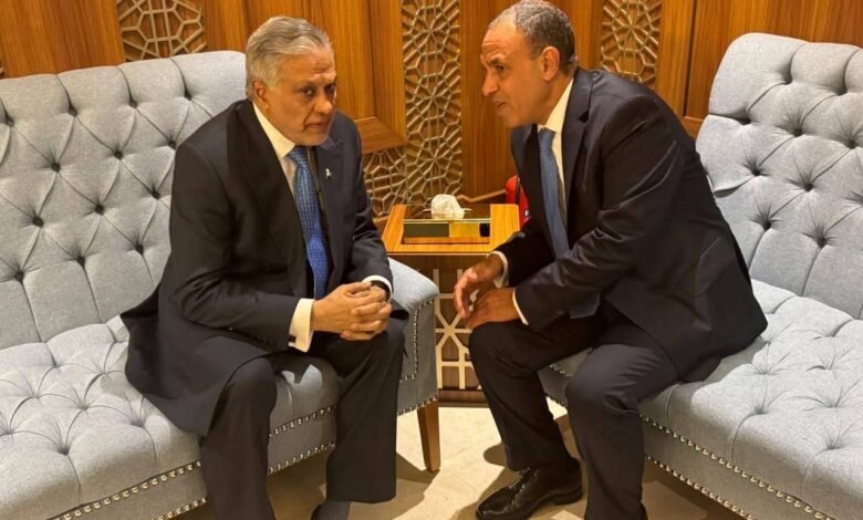 التقى د. بدر عبد العاطي وزير الخارجية والهجرة وشئون المصريين بالخارج، يوم السبت ١٠ يناير ٢٠٢٦، بالسيد محمد إسحاق دار نائب رئيس الوزراء ووزير خارجية جمهورية باكستان الإسلامية، وذلك علي هامش مشاركتهما في الدورة الاستثنائية لمجلس وزراء خارجية منظمة التعاون الاسلامي في جدة.