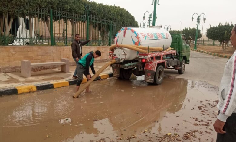 وفي مدينة المنيا الجديدة، تم التحرك الفوري للتعامل مع تجمعات مياه الأمطار بمختلف شوارع وميادين المدينة، مع العمل على سحب المياه أولًا بأول، لضمان تحقيق السيولة المرورية وتيسير حركة المواطنين، خاصة في المناطق الحيوية والطرق الرئيسية، إلى جانب الاستجابة العاجلة لشكاوى وبلاغات السكان، ولا سيما بالمناطق المنخفضة.