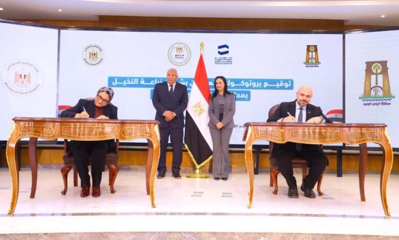 وقد وقع البروتوكول كل من الأستاذ أيمن عبد الموجود الوكيل الدائم لوزارة التضامن الاجتماعي، والأستاذة حنان مجدي نور الدين نائبة محافظ الوادي الجديد، والأستاذ أسامة السيد نائب رئيسة مجلس إدارة بنك ناصر الاجتماعي، والأستاذة انجي اليماني المديرة التنفيذية لصندوق دعم الصناعات الريفية والبيئية.