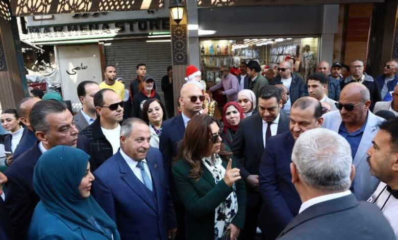 وزيرة التنمية المحلية ومحافظ بورسعيد يتفقدان نموذج تطوير أسواق الحميدي والتجاري بحضور وفد من برنامج ” الهابيتات”