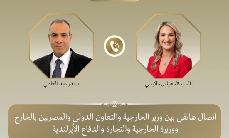 تلقى د. بدر عبد العاطي وزير الخارجية والتعاون الدولي والمصريين بالخارج اتصالًا هاتفياً من السيدة “هيلين ماكينتي” وزيرة الخارجية والتجارة والدفاع الأيرلندية يوم الأربعاء ٤ مارس، لبحث مستجدات الوضع الإقليمى وتداعيات التصعيد العسكرى الخطيرة على أمن واستقرار المنطقة.