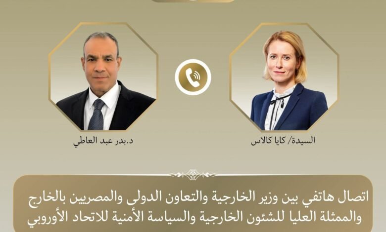 تلقى د. بدر عبد العاطي وزير الخارجية والتعاون الدولى والمصريين بالخارج اتصالاً هاتفياً من السيدة “كايا كالاس” الممثلة العليا للشئون الخارجية والسياسة الأمنية للاتحاد الأوروبي، حيث تناول الاتصال سبل خفض التصعيد العسكري في المنطقة وتطورات القضية الفلسطينية.