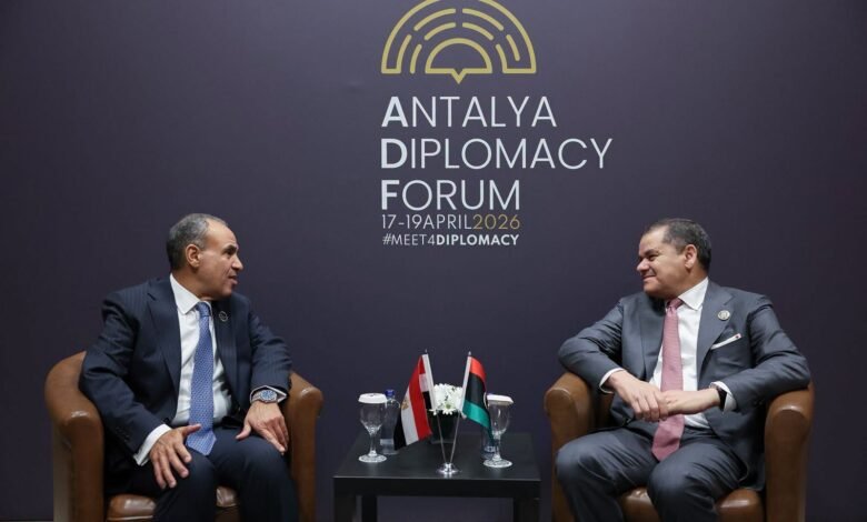 التقى د. بدر عبد العاطي وزير الخارجية والتعاون الدولي والمصريين بالخارج مع السيد عبد الحميد الدبيبة رئيس حكومة الوحدة الوطنية الليبية يوم السبت ١٨ أبريل، وذلك على هامش أعمال منتدى أنطاليا الدبلوماسي.