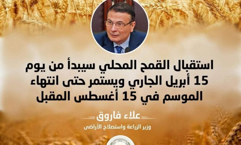 وزير الزراعة يعلن الاستعدادات النهائية لحصاد القمح: 2500 جنيه للإردب وصرف المستحقات خلال 48 ساعة بحد أقصى