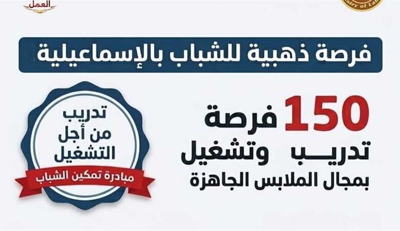 150 فرصة تدريب وتشغيل بالملابس الجاهزة بالإسماعيلية بالتعاون مع “ألبين إيجيبت”