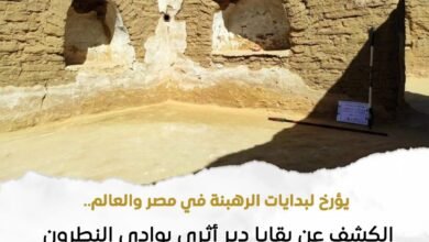 الكشف عن بقايا دير أثري بوادي النطرون يؤرخ لبدايات الرهبنة في مصر والعالم